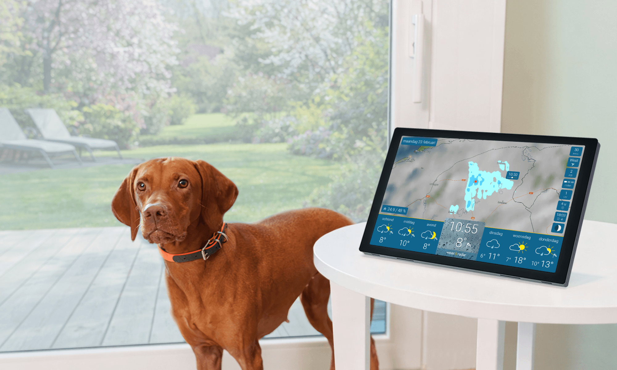 De UV-index geeft aan wanneer de zon bijzonder intens is. Handig voor gezinnen, sporters of tuinliefhebbers. Je weet meteen wanneer je zonnebrandcrème nodig hebt of wanneer je even rust in de schaduw moet nemen.