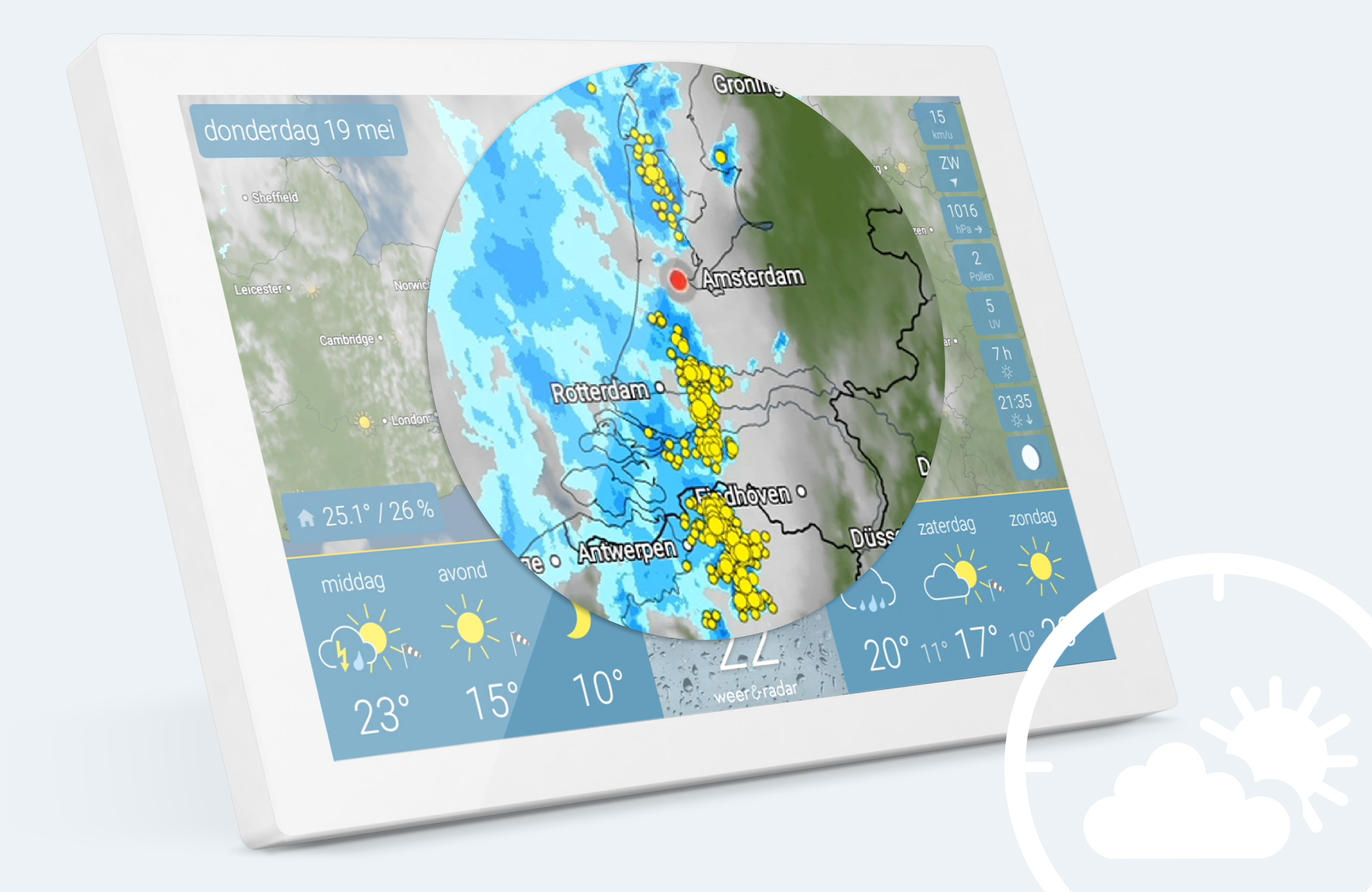 In het onderste schermgedeelte ziet u links het weer gedurende de dag en rechts en de weersontwikkeling voor de komende dagen.