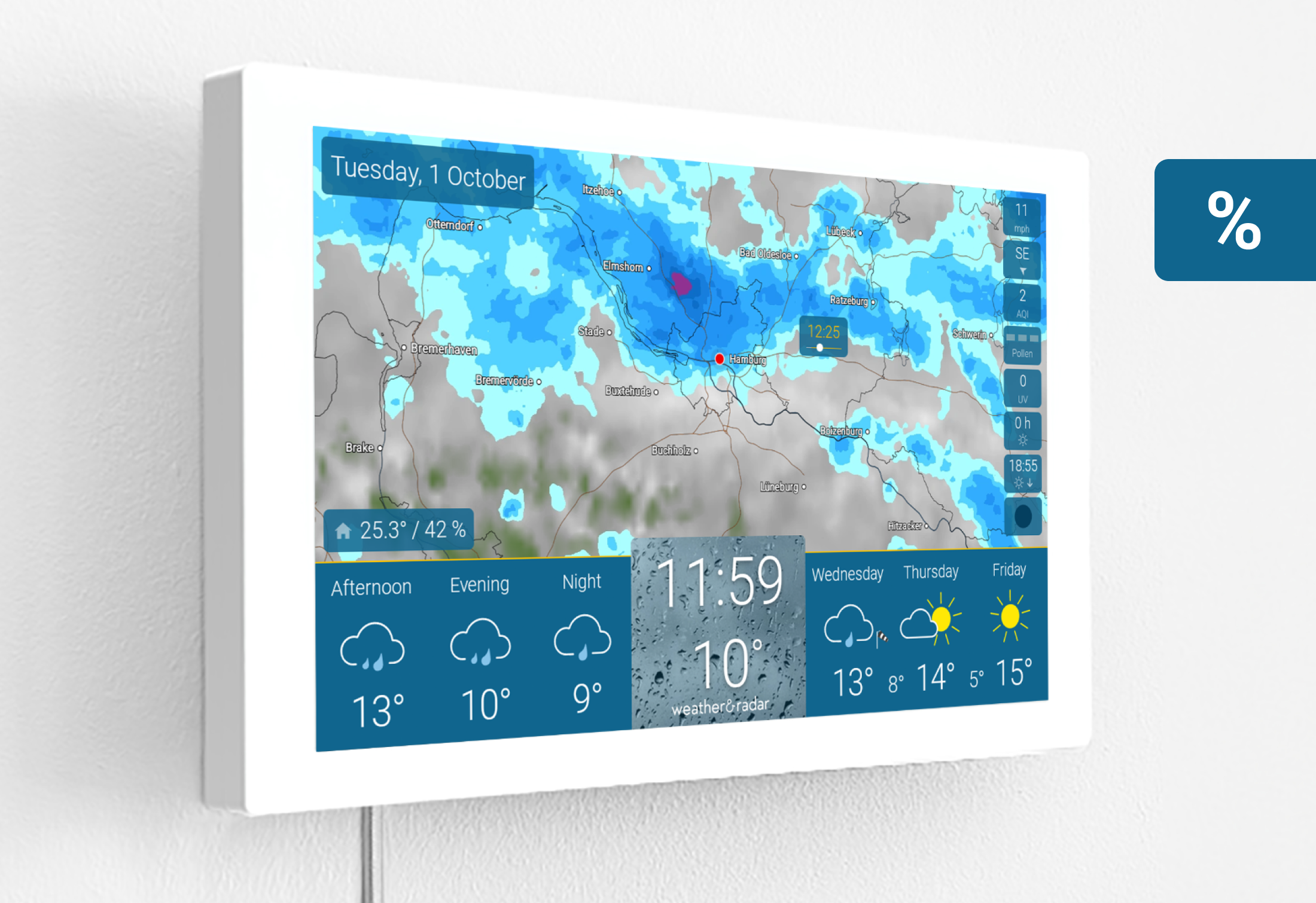 • Weather at eye level – thanks to a specially designed wall mount.