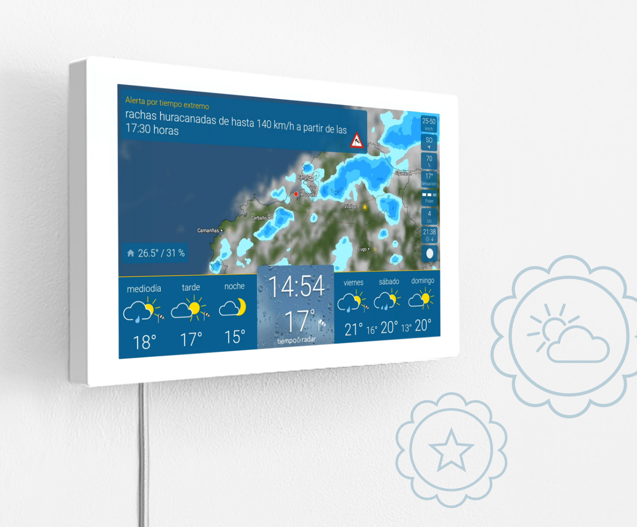 Ahora puedes elegir cómo colocar tiempo & radar home: en la mesa para que sea el centro de atención o en la pared para ahorrar espacio y darle un toque moderno a tu decoración.
