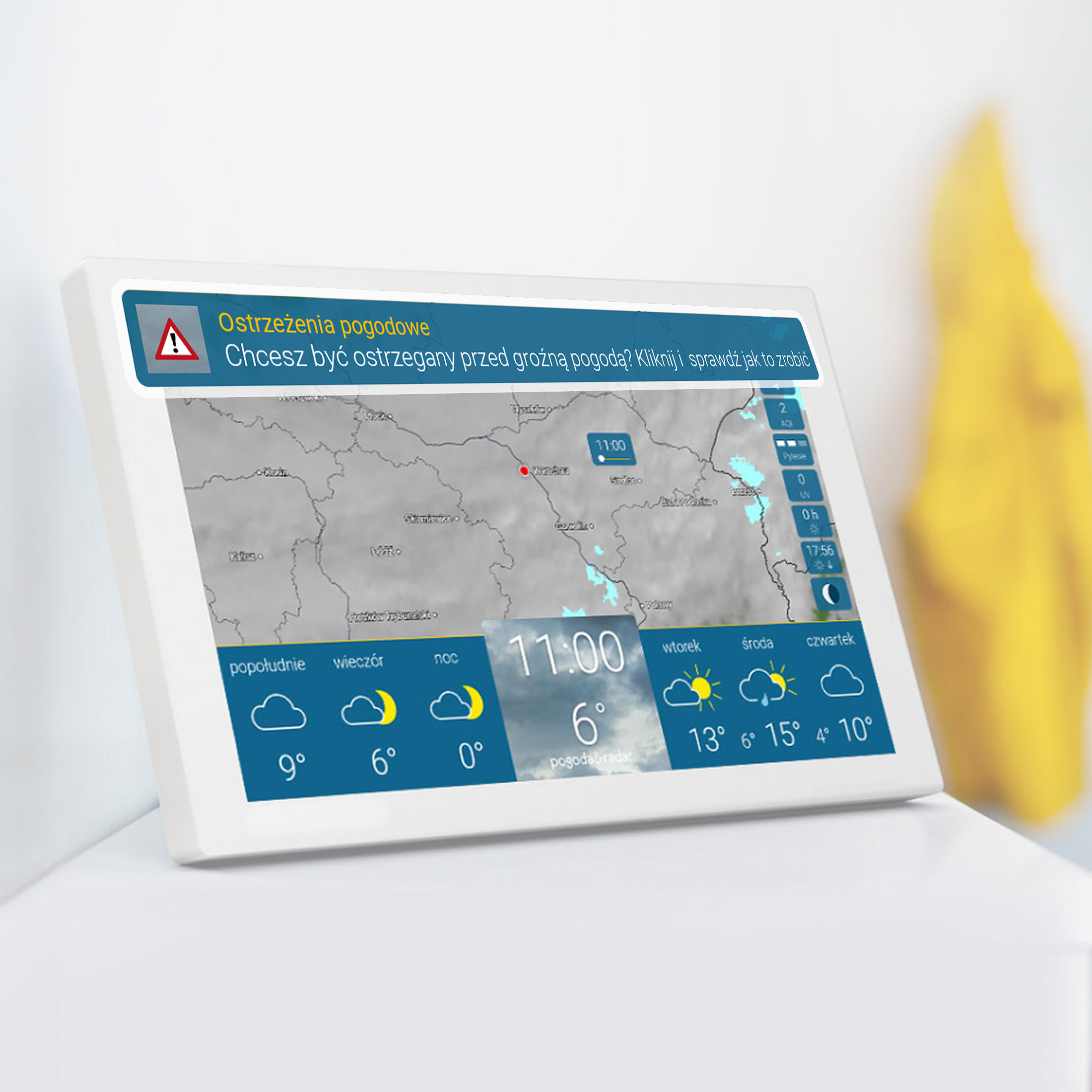 Godzina i aktualna temperatura są wyświetlane pośrodku.