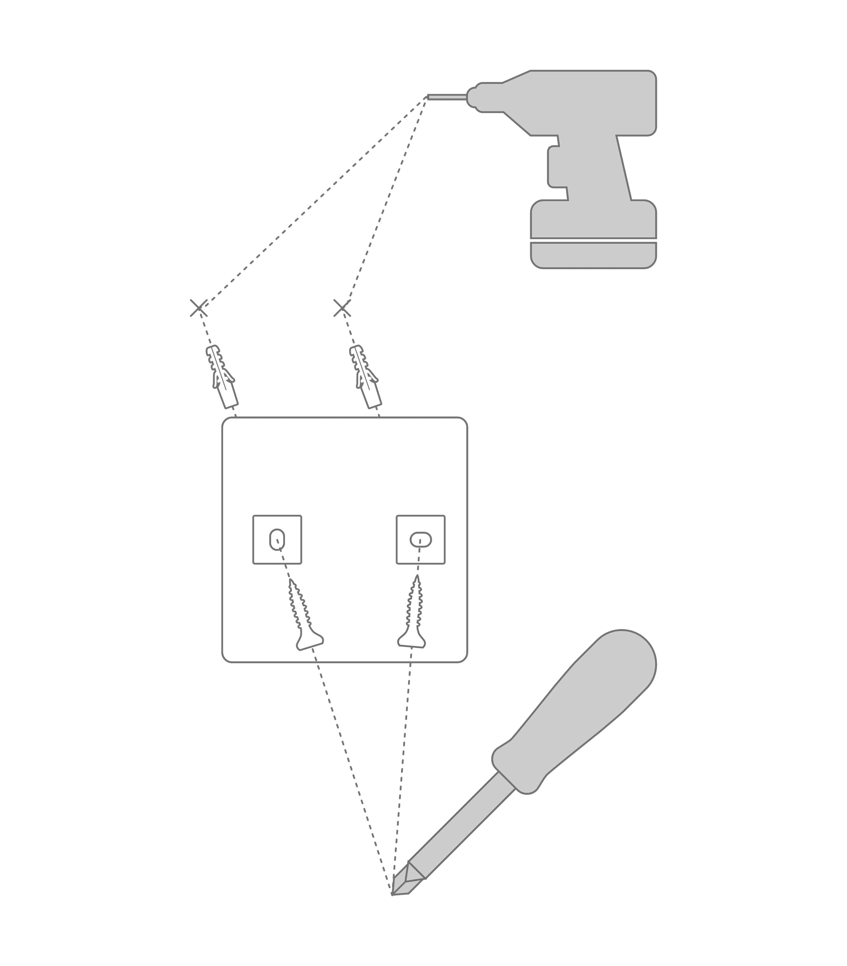 Boor gaten, breng pluggen aan en bevestig de muurbeugel aan de muur met schroeven.